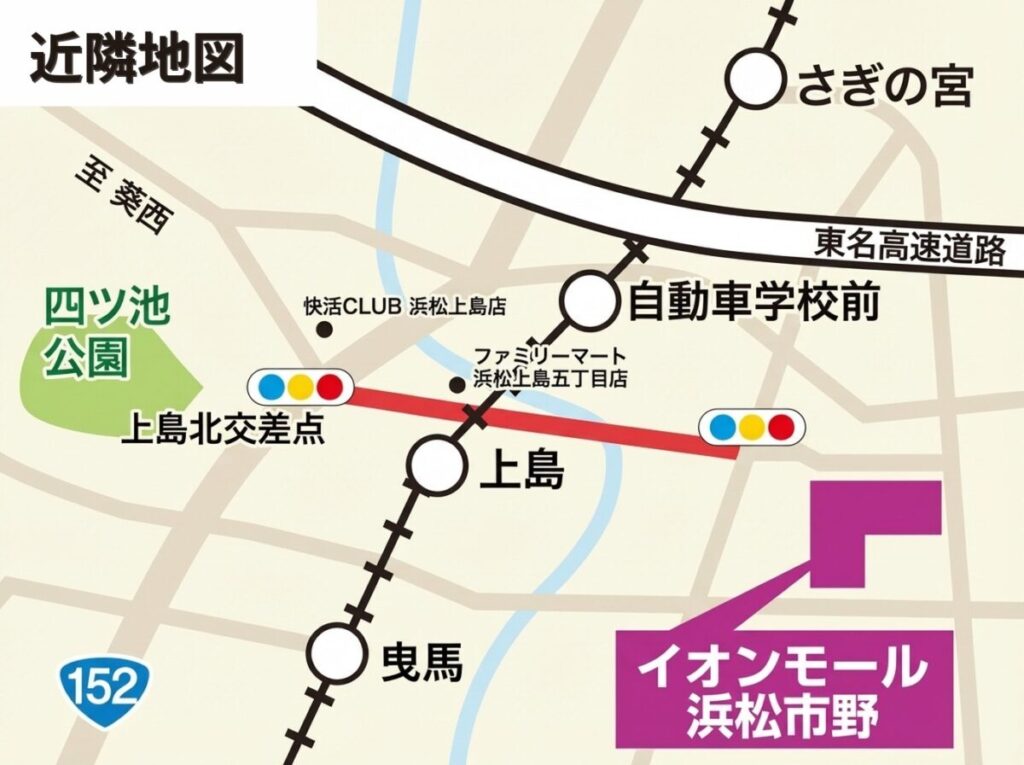 - 浜松市東区:車で5-10分(市野・天王・中野など)